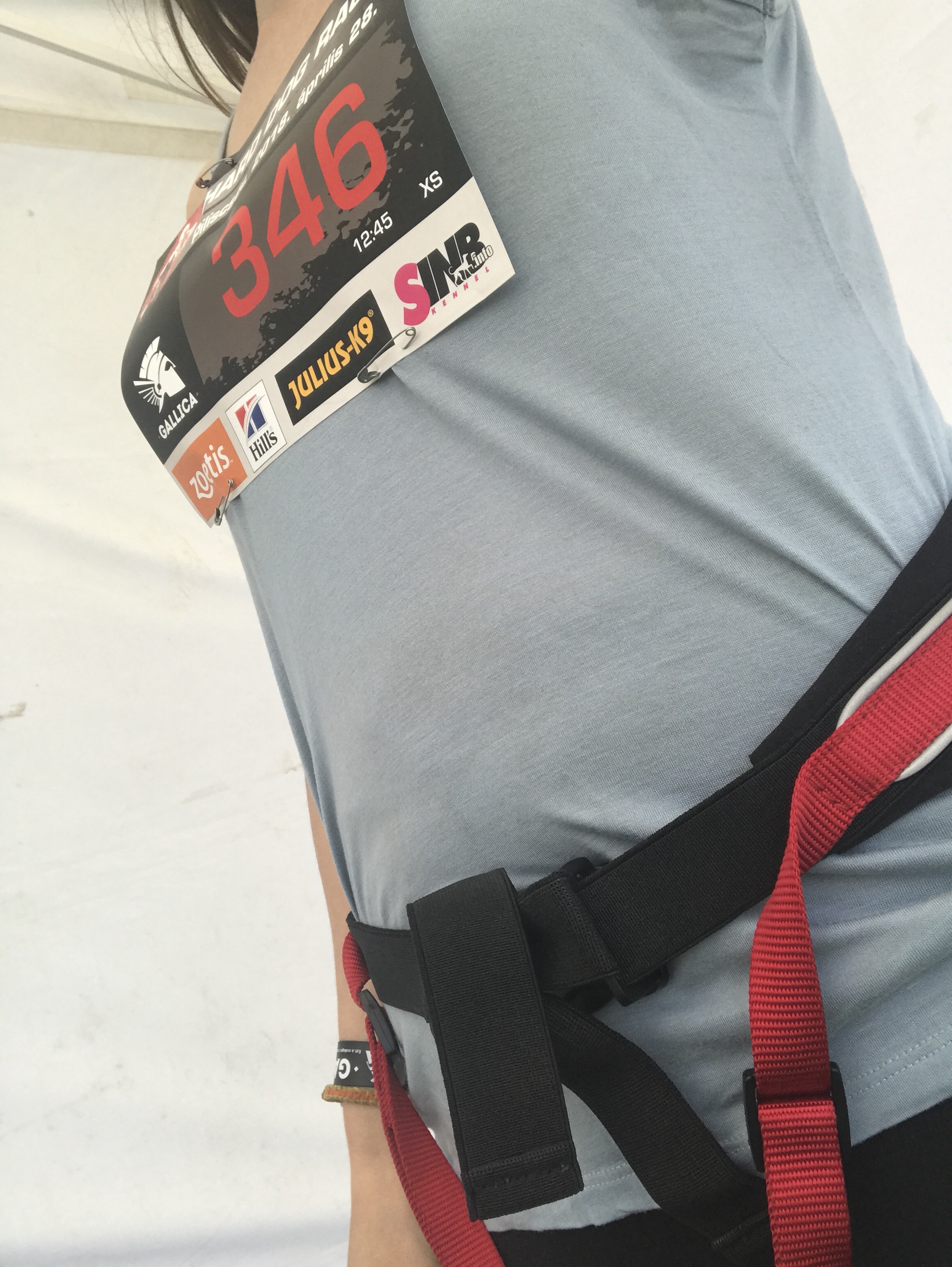 Az elején tényleg rögtön bele akartam halni kicsit, de aztán valahogy minden rendben volt. Goblin nagyon jól vette az akadályokat. Úszni továbbra sem tud ugyan, de akar, ha tartom a hámot a hátán, átmegy bármilyen vizes akadályon. Az utolsónál azért bénáztunk egy kicsit. Én előrementem, hogy lássam, mennyire mély a víz, aztán felnyúltam a parton álló kutyáért, megfogtam a hámját, hogy segítsek neki, de a hám már kicsi megnyúlt a megpróbáltatásoktól, és átcsúszott a kutya fején, amikor meghúztam. Ott álltam derékig sáros vízben, a kezemben egy szutykos, csöpögő hámmal, és a kutya érdeklődve nézett le rám a biztonságos szárazföldről. Talán mondanom sem kell, hogy ez az akadály volt nagyjából az egyetlen, ahol a fotósok és a közönség is közel jöhetett, így valószínűleg rengeteg csodálatos felvétel készült, ahogy partra vetett bálnaként vergődve próbálom a sáros kutyára ráapplikálni a még sárosabb hámot, hogy aztán együtt csobbanjunk vissza a habokba. De itt már minden mindegy volt, mert a túloldalon felkapaszkodva már csak egy emelkedő, és megérkeztünk a célba végre.