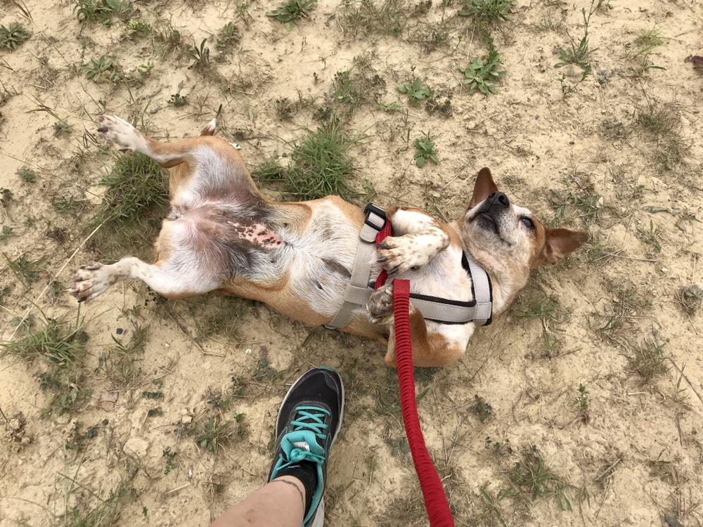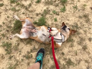És azért futottam is néha, igaz, nem mindig a saját kutyámmal. Ő itt Winny, akit le kellett mozgatnom a nyáron. Nem mondta, hogy nem akar futni, úgyhogy ezt beleegyezésnek vettem.