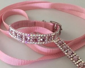 Rózsaszín póráz strasszos karabinerrel és csillogós fogantyúval