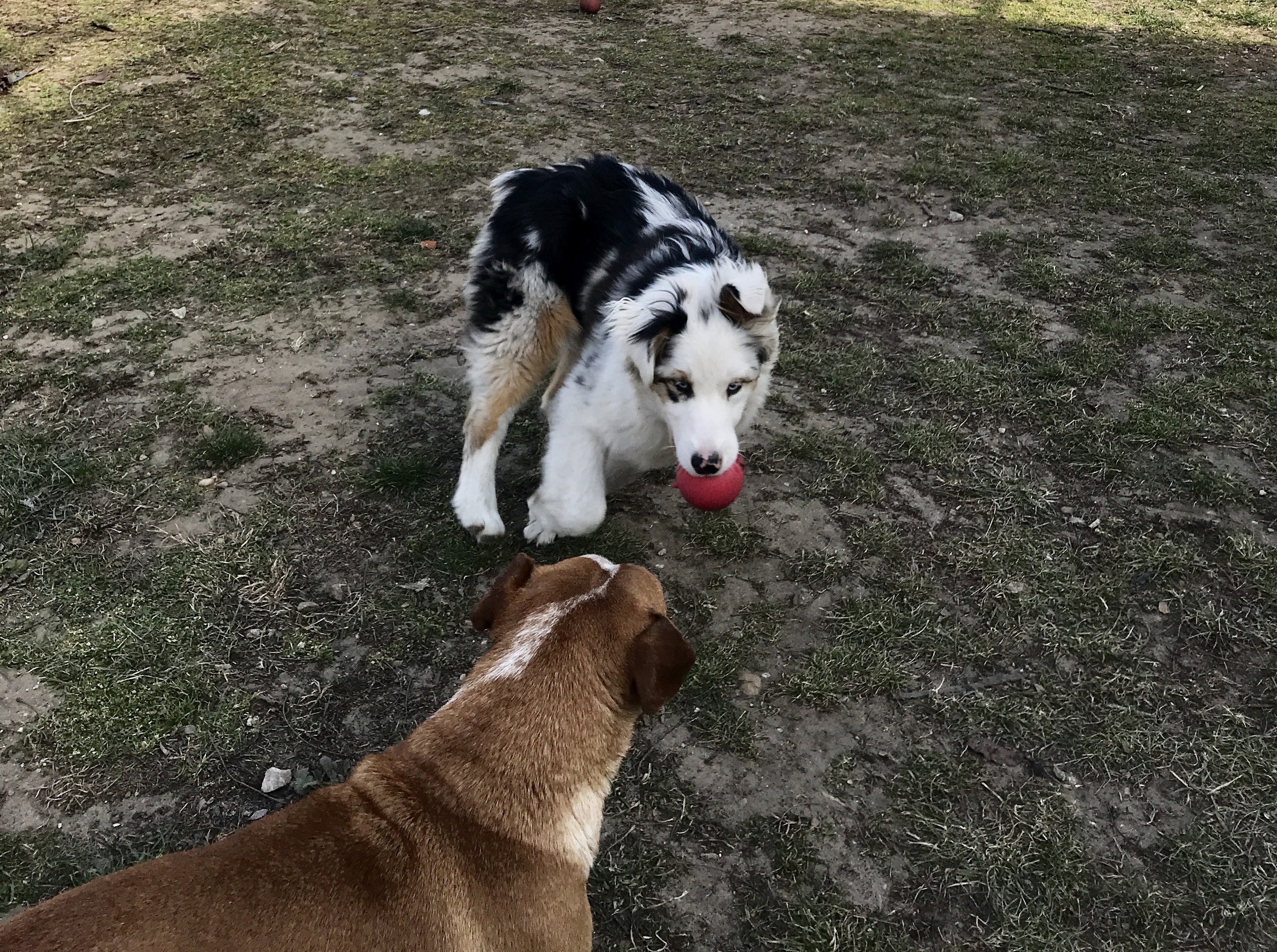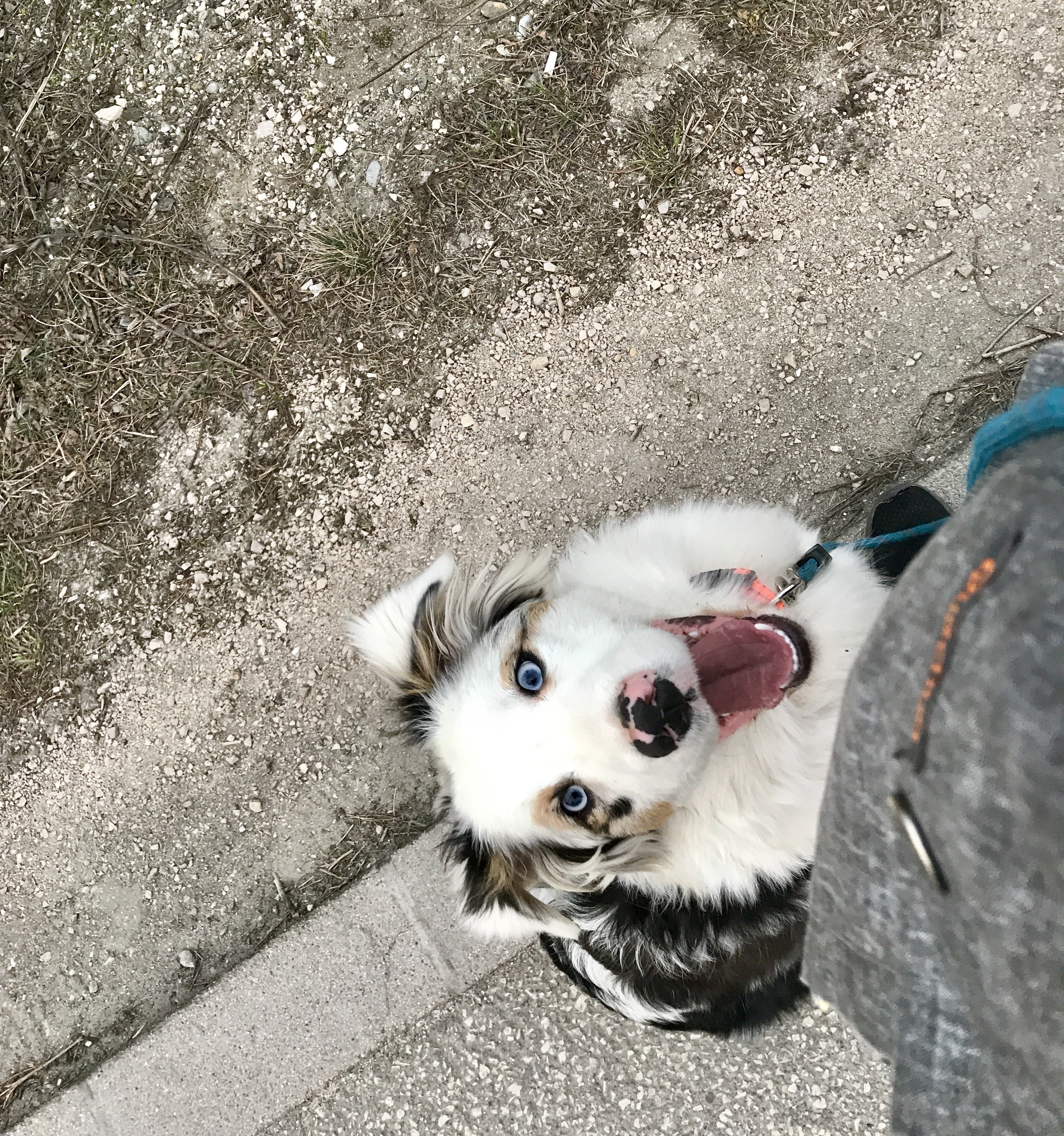 Szóval egész jól összecsiszolódtunk. Díva nagyjából mindent tud, amit egy ennyi idős kiskutyának szerintem tudnia kell: szobatiszta, gond nélkül utazik kocsiban, jól elvan ketrecben, ül, fekszik, láb mellett sétál pórázon és póráz nélkül, rövid ideig helyben marad, bármilyen eldobott tárgyat szívesen visszahoz. Idegen emberekkel, kutyákkal, és bármilyen élőlénnyel nyitott és barátságos, stabilan behívható. És persze nem tudtok ellenállni, hogy mindenféle haszontalan, de vicces dolgot is tanítsak neki, úgyhogy tud pacsit adni, hemperegni, láb között szlalomozni, és hátat fordítva betolatni a lábam közé. A fogyatékossága a kettőnk kapcsolatára kifejezetten előnyösen hat, és bár néha okoz egy kis fejtörést, mit hogyan tudok a legegyszerűbben megértetni vele, olyankor arra gondolok, hogy biztos velem se könnyű.
