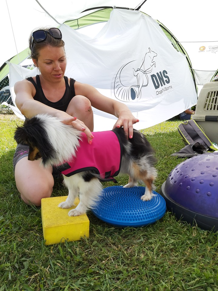 “Minden sportág terhel bizonyos izomcsoportokat, még azok is, amelyek látszólag nem is annyira megerőltetőek – mondja Dalma. – A flyball a csuklót a fordulások miatt, az engedelmességi munka a nyakizmokat és a gerincet, mivel a kutyának állandóan felfelé kell figyelnie a pályán, és gyorsan kell pozíciókat váltania, és még sorolhatnánk. Csak azzal, hogy a kutya izmai erősebbek, és tudatosabban használja őket, értékes másodperceket lehet nyerni a versenypályán, amin helyezések múlnak.