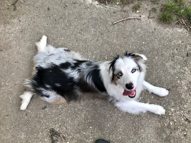 Ő Oreo, aki border collie-hoz méltóan nagyon okos, rengeteg trükköt tud. A képen az látható, ahogy a saját maciját pakolja be egy dobozba. Oreo éppen a süketségének köszönheti, hogy befogadó családhoz költözhetett a fajtamentéstől: a gazdája zenész, akinek így nem kell aggódnia, hogy a ha magával viszi dolgozni a kutyát, akkor megijeszti a nagy zajjal, amivel a munkája jár.
